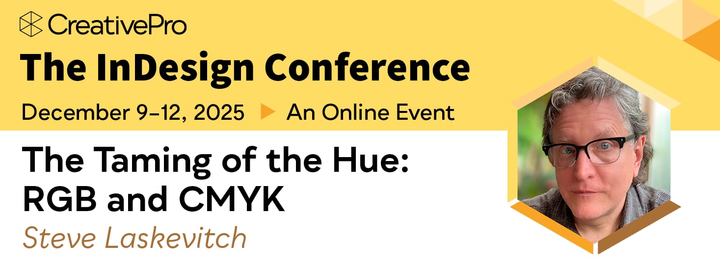 Steve will discuss how color really works in InDesign (and beyond) at this upcoming conference on December 12. Can't make it? Don't worry! Luminous Works will be providing this important information as a short class in 2026.